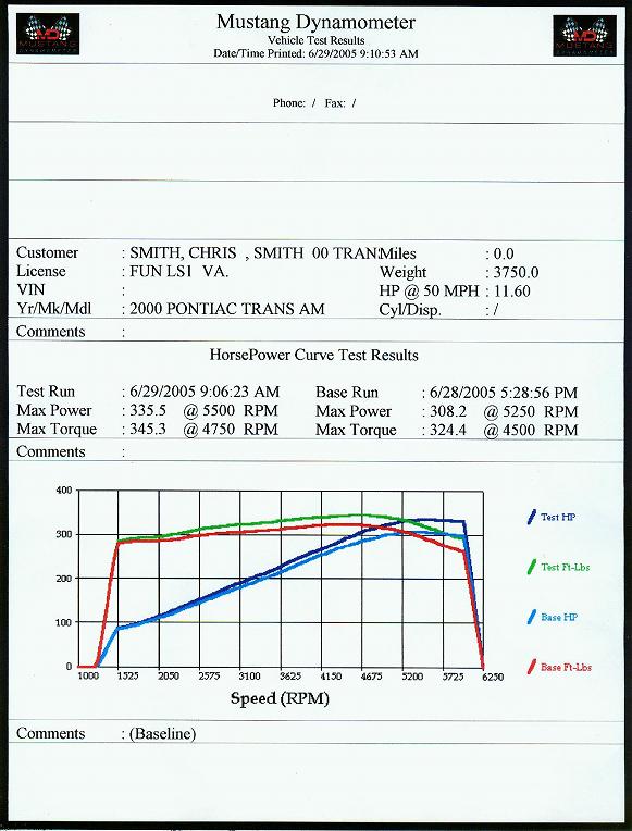 Fan 1 - On: 185° Off: 175° Fan 2 - On: 195° Off: 184° << Click chart for bigger image 335.5 RWHP @ 5500 rpm [*RWHP /.85 to account for Drive Train Friction Loss] Mustang Dyno's are so stingy, but real! |